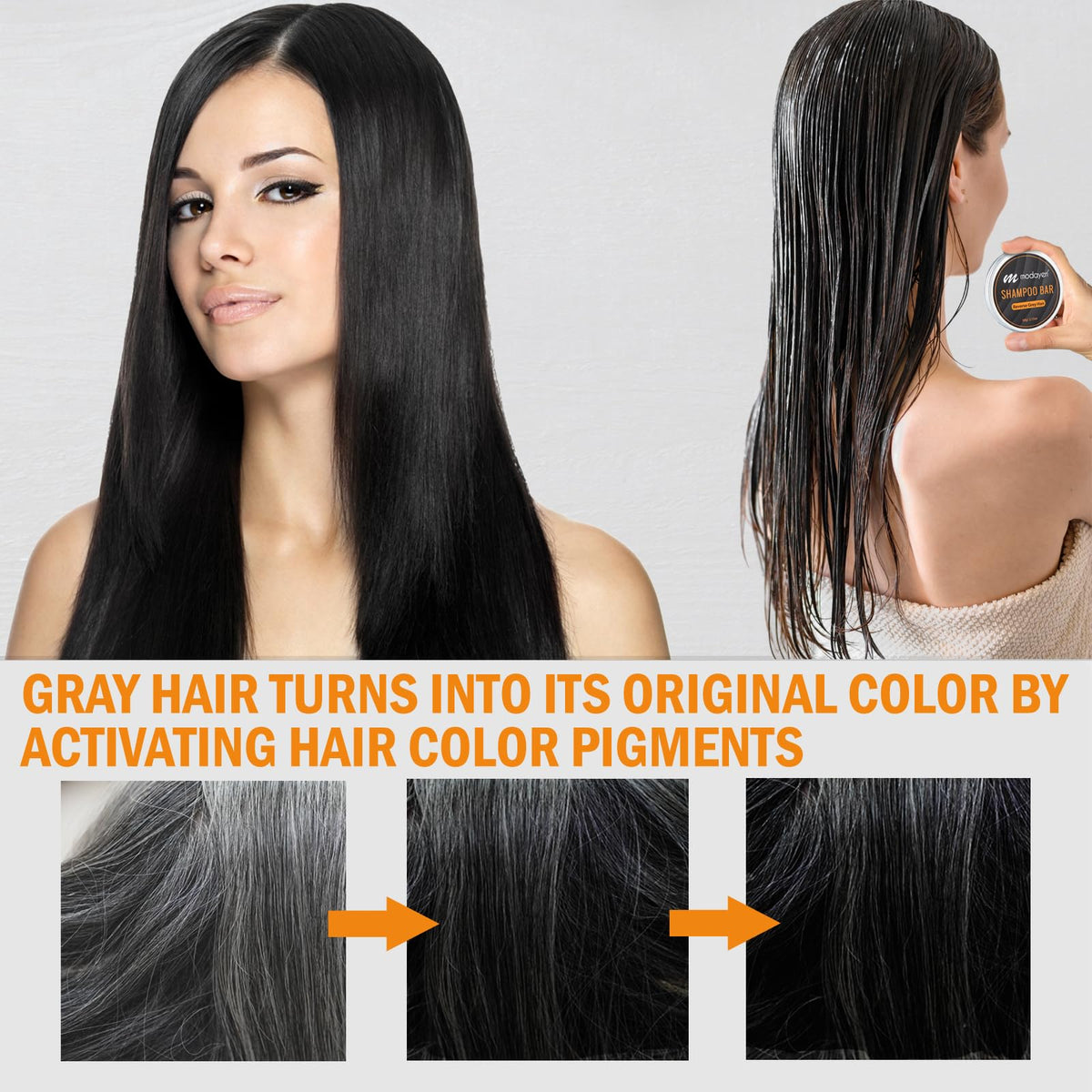 Reverse Grey Hair Shampoo Bar is a solid shampoo bar designed to moisturize, refresh the scalp, and provide coverage for gray hair. This natural formula restores shine and is suitable for both women and men.