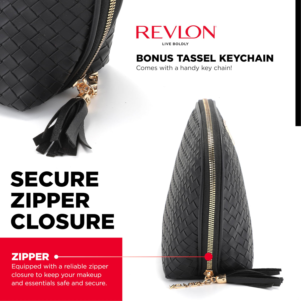 REVLON Basketweave Makeup Pouch - Small Makeup Pouch, Compact Travel Makeup Organizer, Cosmetic Bag, Mini Makeup Case with Pockets, Toiletry Pouch - Gifts for Women, Ladies, or Teen Girls, Onyx