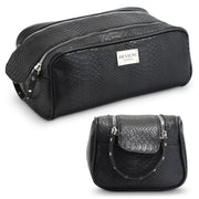 REVLON Croc Embossed Makeup Bag - Small Makeup Pouch, Travel Makeup Organizer with Two Zippers, Cosmetic Bag, Mini Makeup Case with Pockets - Gifts for Women, Ladies, or Teen Girls, Onyx