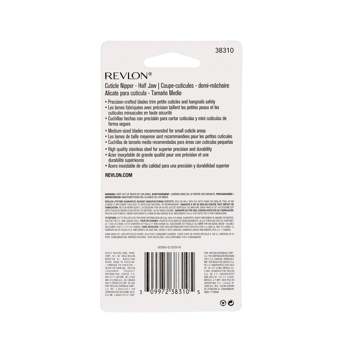Revlon Half Jaw Cuticle Nipper, Manicure Tool for Nail Care, Hangnail Clipper, For More Precise Trims, Non-Slip Grip, Stainless Steel, 1 Count