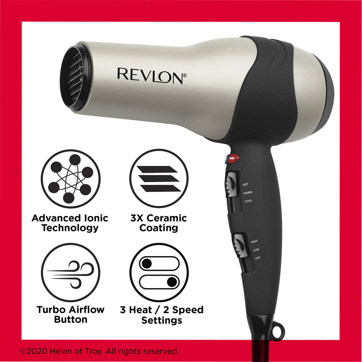 Experience fast and shiny hair drying with the REVLON Turbo Hair Dryer. Featuring advanced ionic technology and ceramic coating, this dryer offers turbo heat and cold shot features for quick drying and added shine.