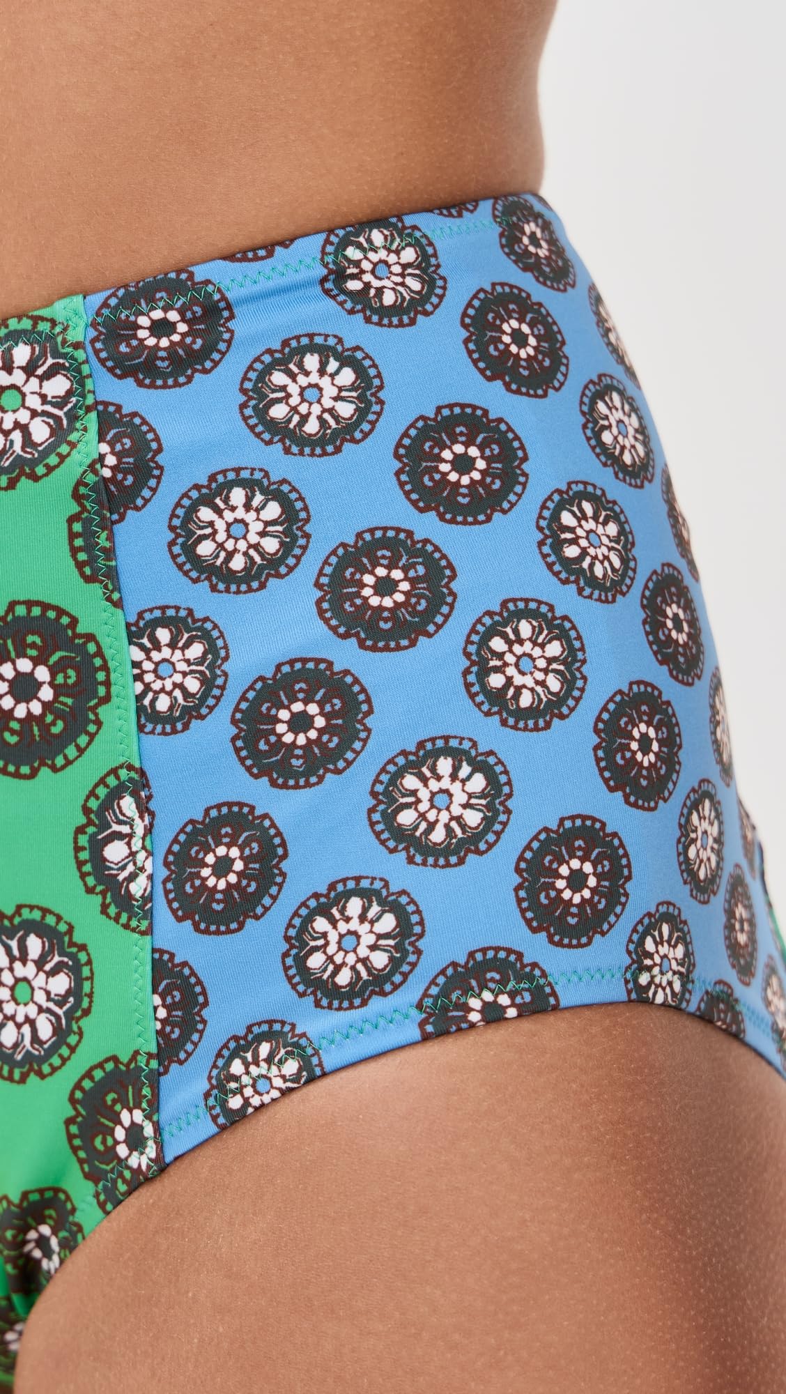 Elevate your beach look with the Rhode Navya Bikini Bottoms. Designed for the modern woman seeking style and comfort, these bottoms feature a colorblock floral print and a chic paneled design. Offering cheeky coverage and a trendy high-waisted fit, these bottoms are perfect for those who want to make a fashion statement by the shore.