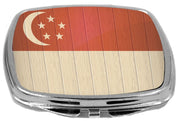 Rikki Knight Compact Mirror on Distressed Wood Design featuring the Singapore Flag is a stylish and compact accessory for on-the-go beauty touch-ups. This 3-ounce mirror combines functionality with patriotic flair.