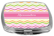 Rikki Knight Pink Chevron Name Design Compact Mirror featuring the name Alexandra is a personalized beauty accessory that combines style and functionality. This 3-ounce mirror is perfect for quick touch-ups on the go.