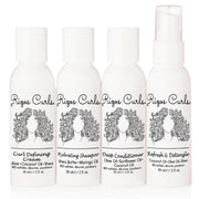 Rizos Curls 4-Step Travel Kit is your ultimate companion for curly hair care on the go. This kit includes Curl Defining Cream, Shampoo, Conditioner, and Refresh & Detangle solutions in convenient 2 fl oz sizes, ensuring your curls stay nourished and defined wherever you are.