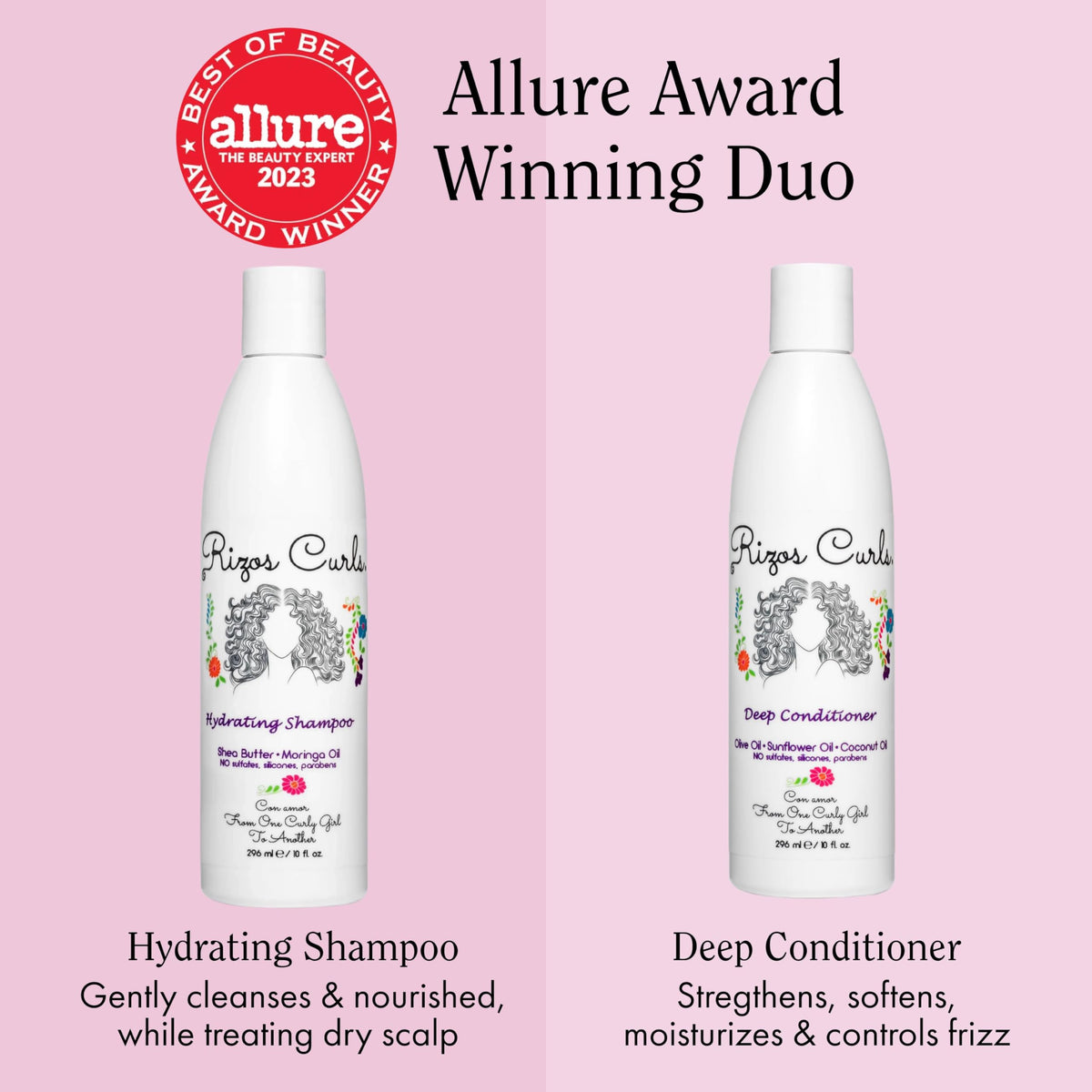 Rizos Curls Wash Day Bundle, Hydrating Shampoo & Deep Conditioner Bundle, Gently Cleanse and Hydrate Curly Hair, Moisturize Scalp & Hair, Clean & Natural Ingredients for all Hair Types 1a - 4c