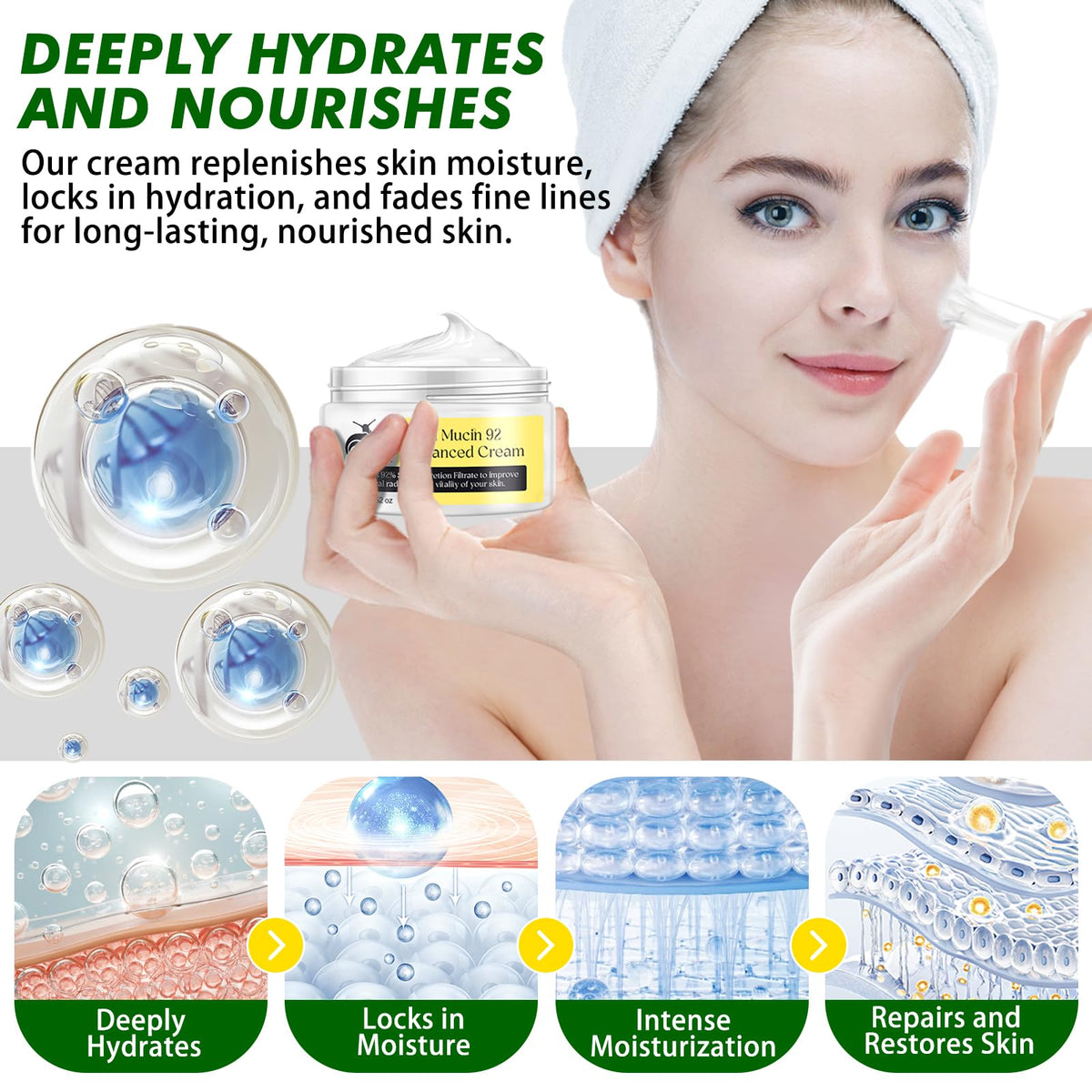 RoongDuuDll Snail Mucin Moisturizer is a serum cream enriched with advanced Snail 92 Mucin Essence for intense face moisturization. This day and night Korean skin care repair cream is designed to nourish dry skin effectively.