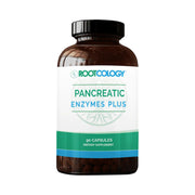 Rootcology by Dr. Izabella Wentz Pancreatic Enzymes Plus is a powerful blend of Enteric Coated Lipase, Protease & Amylase with Bromelain in 90 capsules. This supplement supports digestive health, enzyme production, and nutrient absorption for overall well-being.