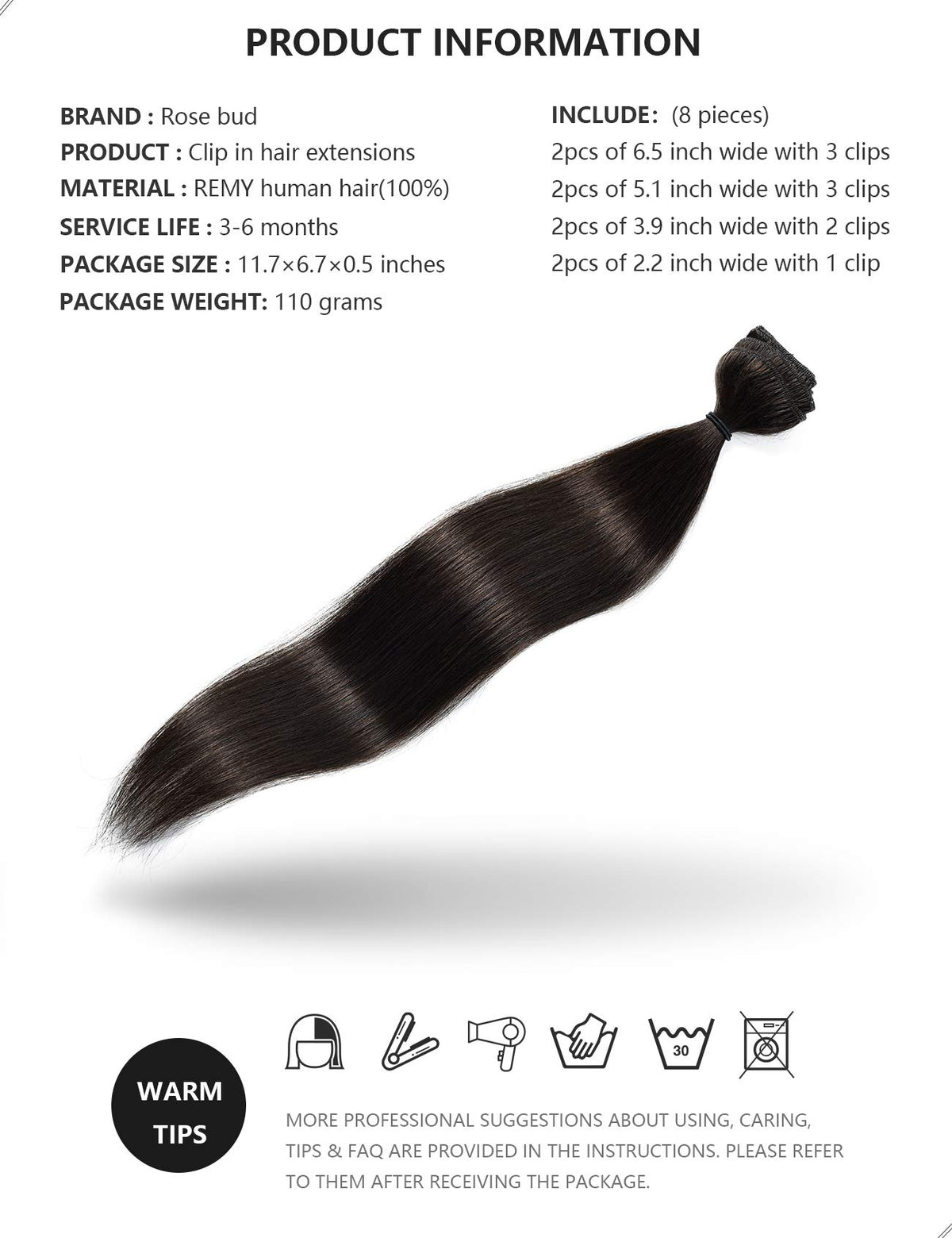 ROSEBUD Clip in Hair Extensions REMY Human Hair 8Pcs 18 Clips 70g/Set 18 Inch
