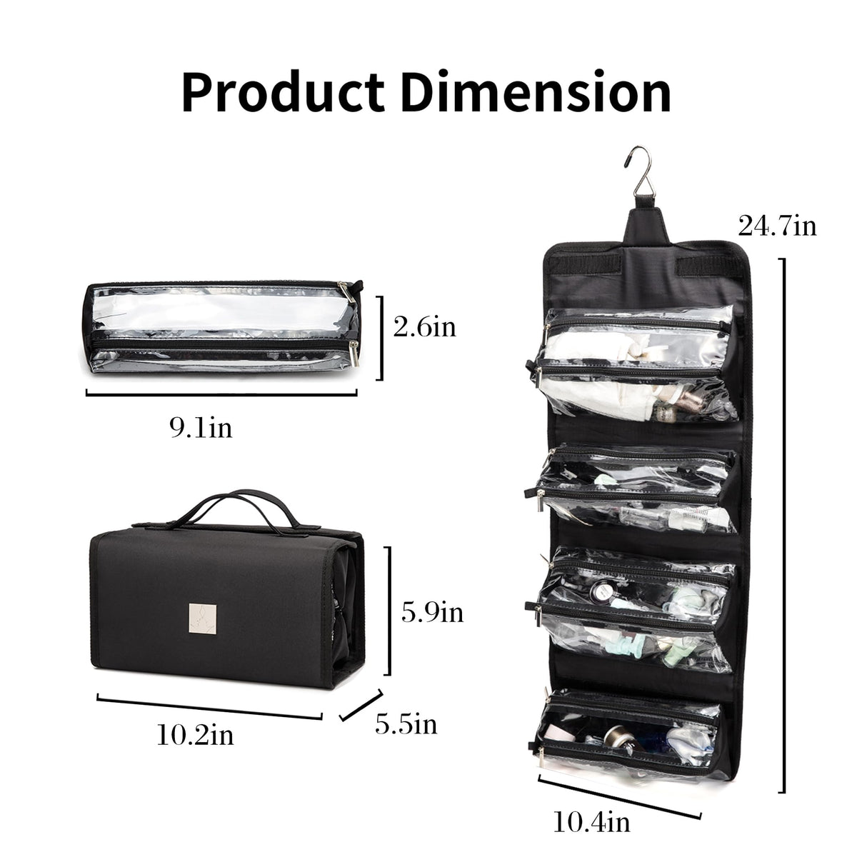 ROYALFAIR Hanging Toiletry Bag with Durable Hook Roll-Up Make Up Organizer and Travel Bag - 4 Removable Cosmetic Bags Suit for Men or Women (Black)