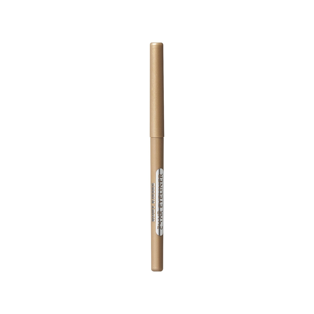 Add a touch of glamour with Ruby Kisses Pencil Eyeliner in Metallic Gold. This retractable eyeliner is waterproof, smudge-proof, and offers high pigmented color that lasts all day and night.
