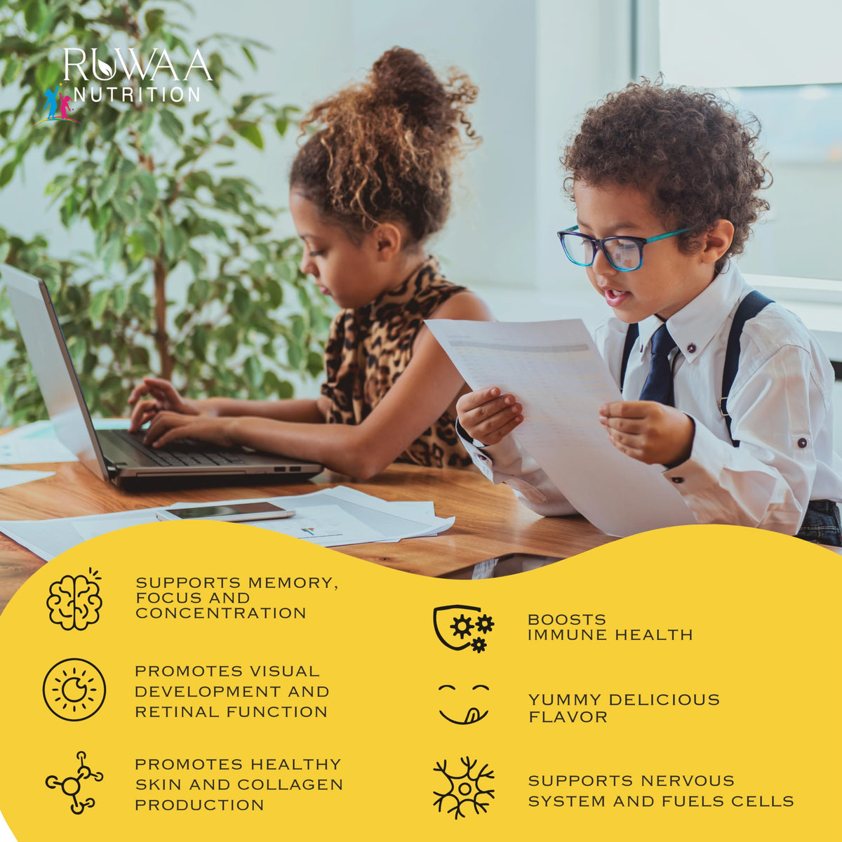 - NOOTROPICS BRAIN GUMMIES SUPPLEMENTS FOR KIDS: Improve Concentration And Memory With Omega 3 6 9 + DHA; Boosts Speech, Calmness And Homework Ability, Improve Cognition, Attention And Focus For Kids. Omega Kids Vitamins that Promote Healthy Heart, Brain And Vision Health. Supports Skin And Joint Health.*
