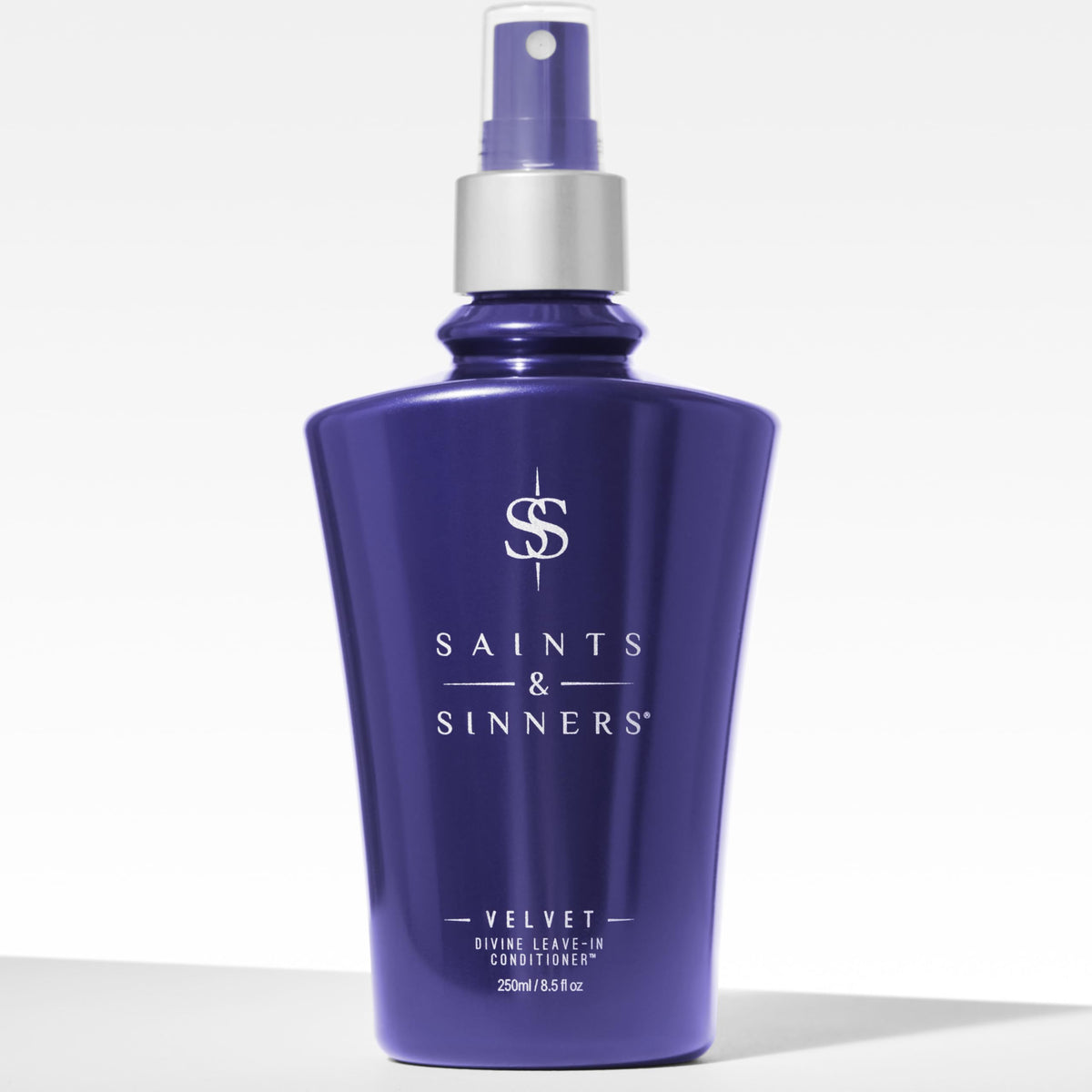 Saints & Sinners Velvet Divine Leave-In Conditioner Spray is a luxurious hair treatment that targets dry, frizzy, and damaged hair. This award-winning spray adds moisture, shine, and manageability to your locks.