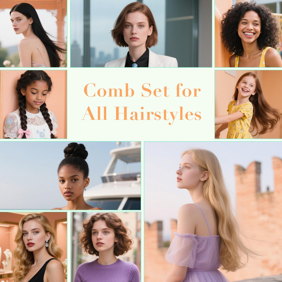 Style your hair effortlessly with SALONSILK Dopamine Colorful Professional Comb Set. This 4-piece set includes wide tooth, rat tail, fine tooth combs, perfect for braiding, cutting, and styling curly hair for both men and women.