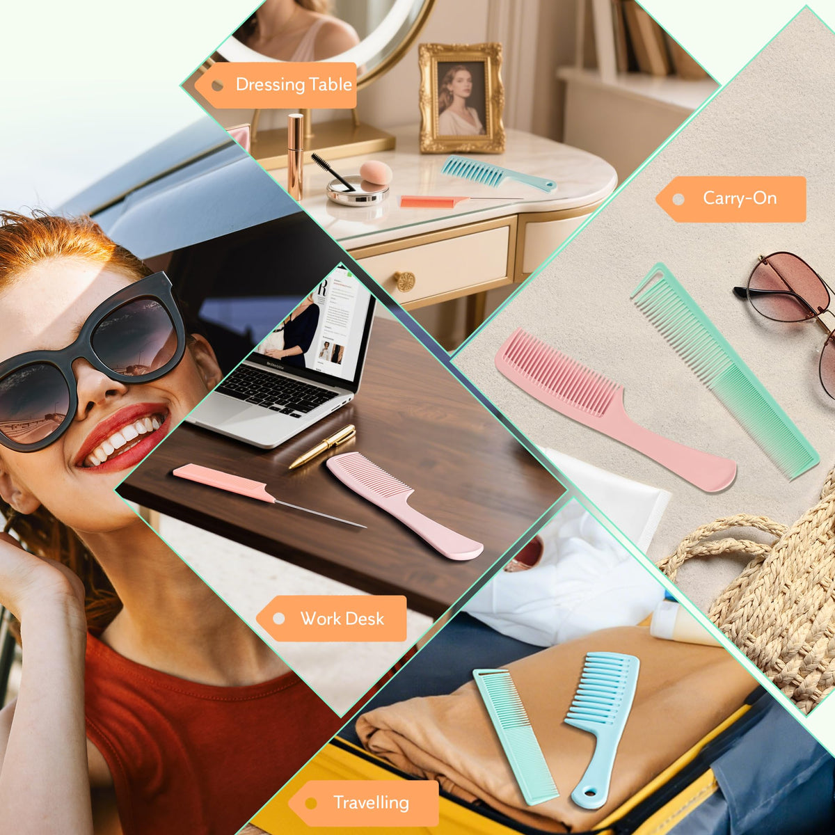 SALONSILK Dopamine Colorful 4PCS Professional Comb Set, Wide Tooth Rat Tail Fine Tooth Hair Combs, Braiding Cutting Barber Styling Curly Parting Set for Men and Women