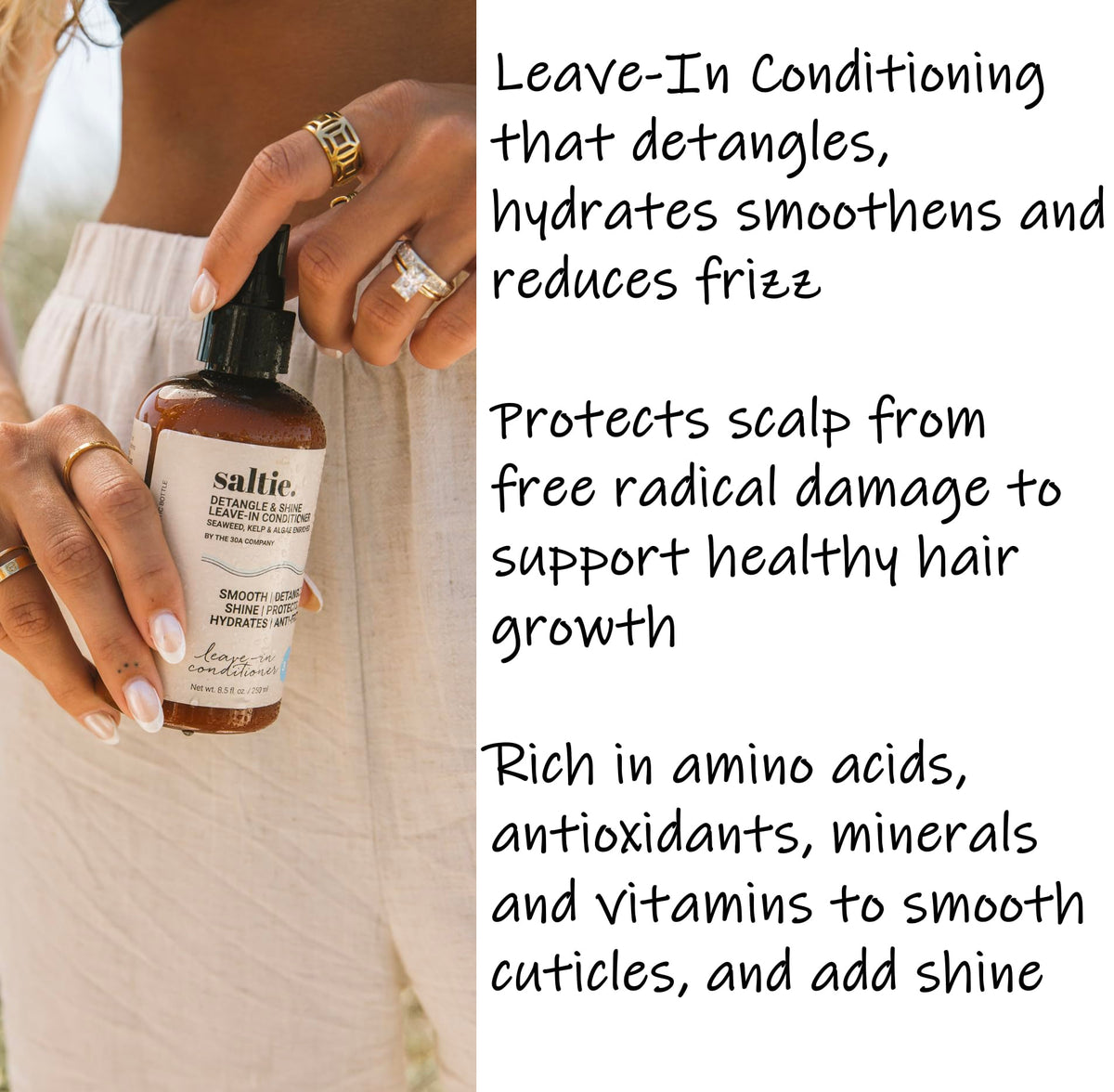 Saltie by 30A Leave-In Conditioner, 8.5 fl. Oz/250ml - Seaweed, Kelp & Algae Enriched Detangle & Shine Hair Treatment -Ideal For Frizzy and All Hair Type , Protects Scalp
