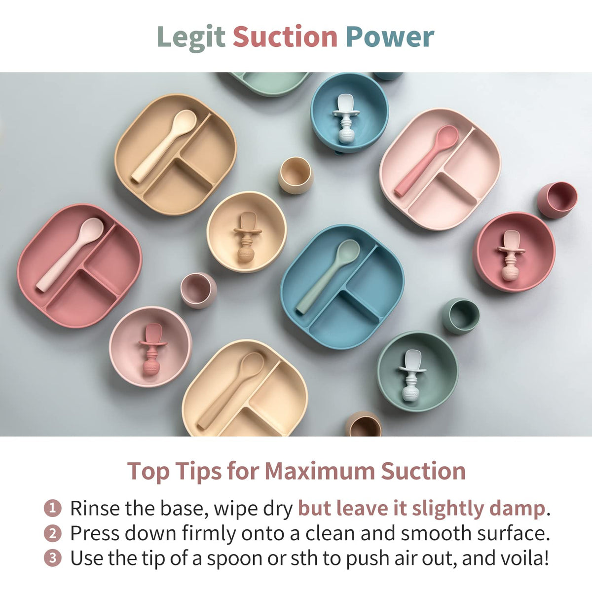SAMiGO Silicone Baby Feeding Set, Suction Plate Bowl Set, Self Feeding Spoons, Bib, Cup, Baby Led Weaning Supplies, First Stage Feeding Essentials, Food Eating Utensils, 6+ Months