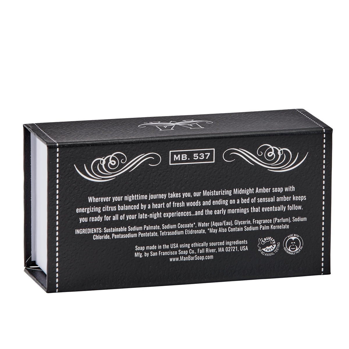 San Francisco Soap Company Midnight Amber Fragrance Man Bar is a moisturizing soap bar that is free from harmful chemicals. Suitable for all skin types, this soap is made in the USA and offers a luxurious cleansing experience.