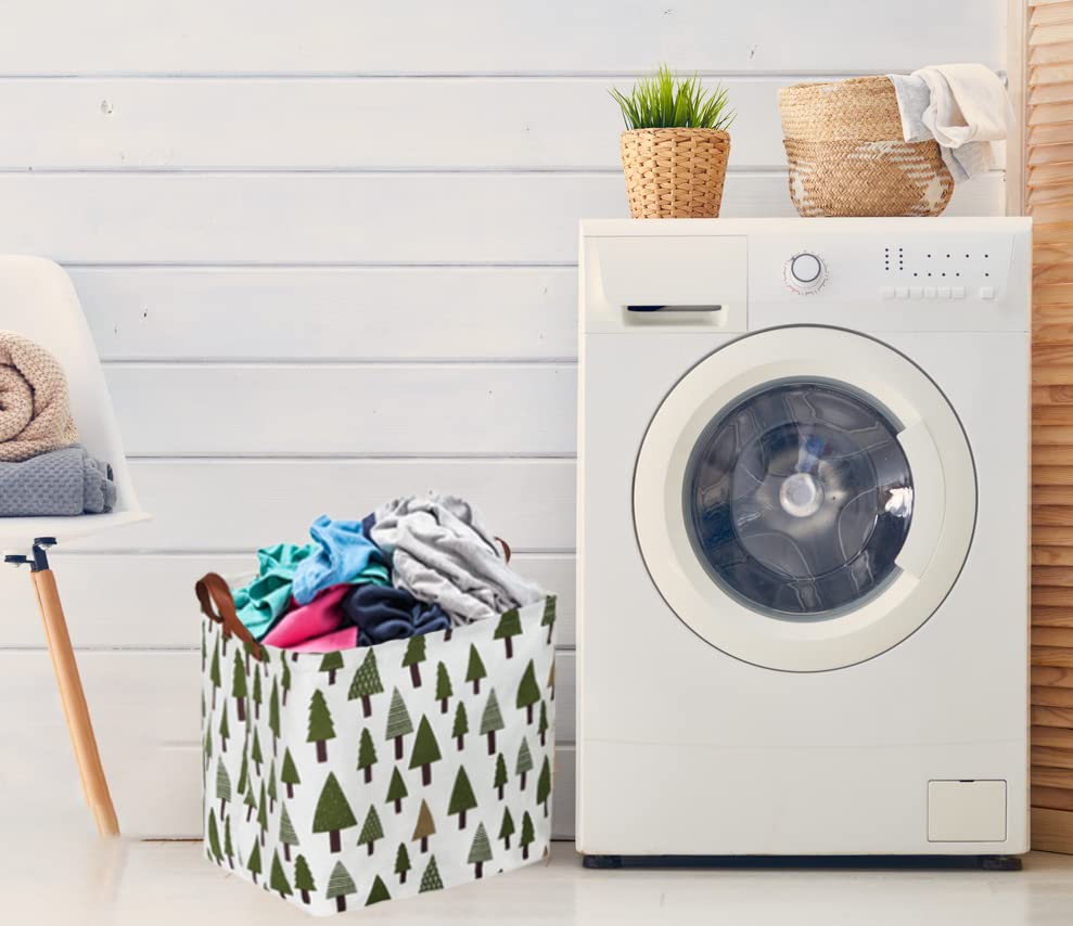 Sanjiaofen Square Woodland Storage bin, Nursery Basket,Collapsible Green Storage Box with Handles for Nursery Storage. (Square Tree)