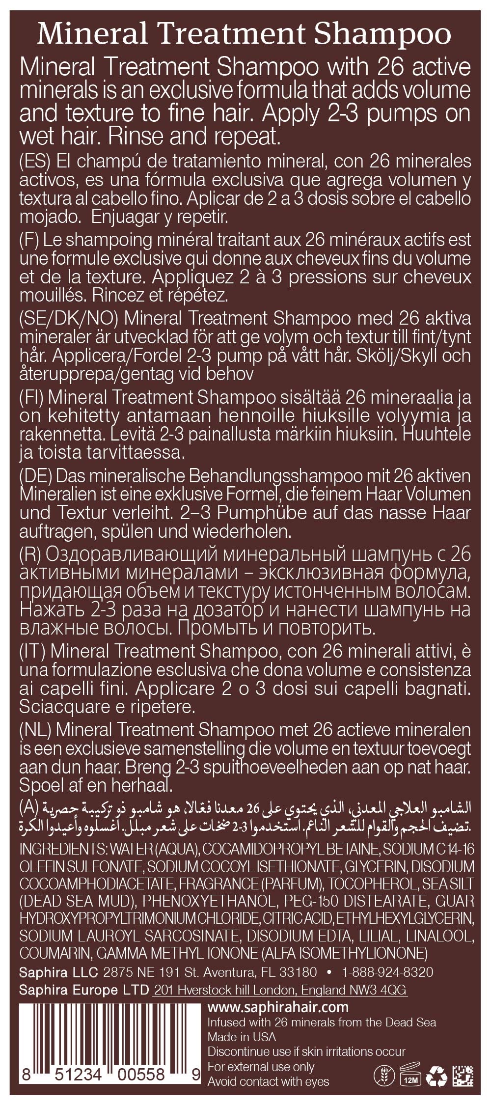 Nourish and volumize your hair with Saphira Mineral Treatment Shampoo. Experience luxurious care for fine, thin, and color-treated hair.