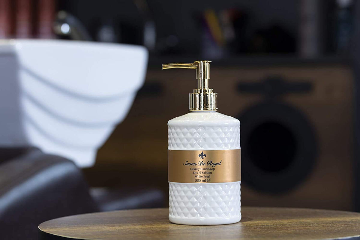 Savon De Royal White Pearl Liquid Hand Soap in Lily Flower Scent offers a luxurious hand wash experience with a multipurpose liquid soap that leaves your hands clean, soft, and delicately scented.