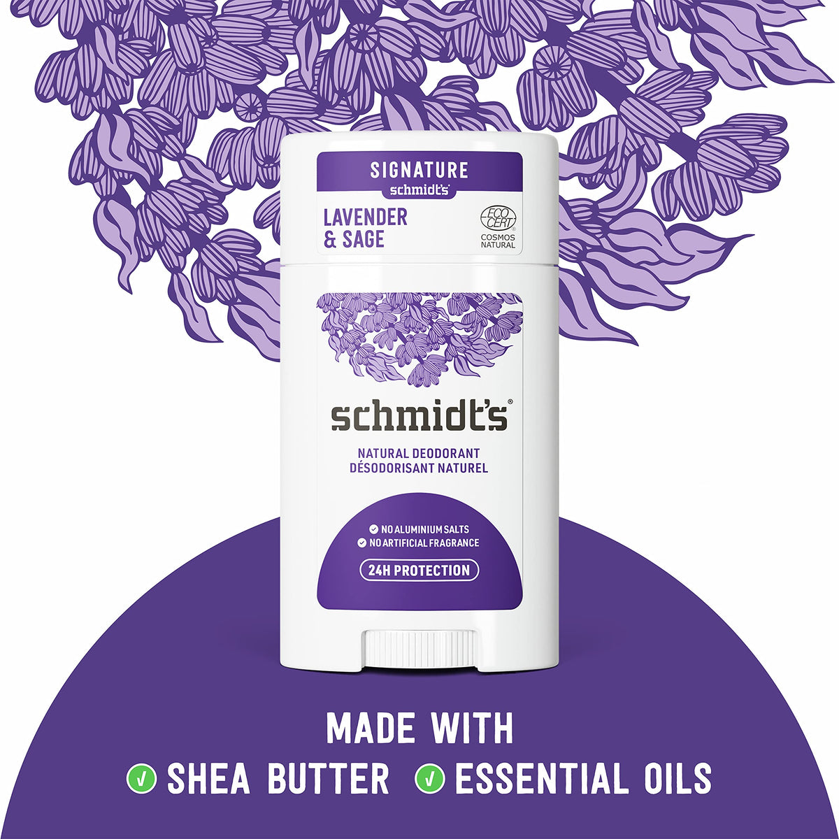 Schmidt's Aluminum Free Natural Deodorant for Women and Men, Lavender and Sage with 24 Hour Odor Protection, Certified Natural, Vegan, Cruelty Free, 2.65 oz