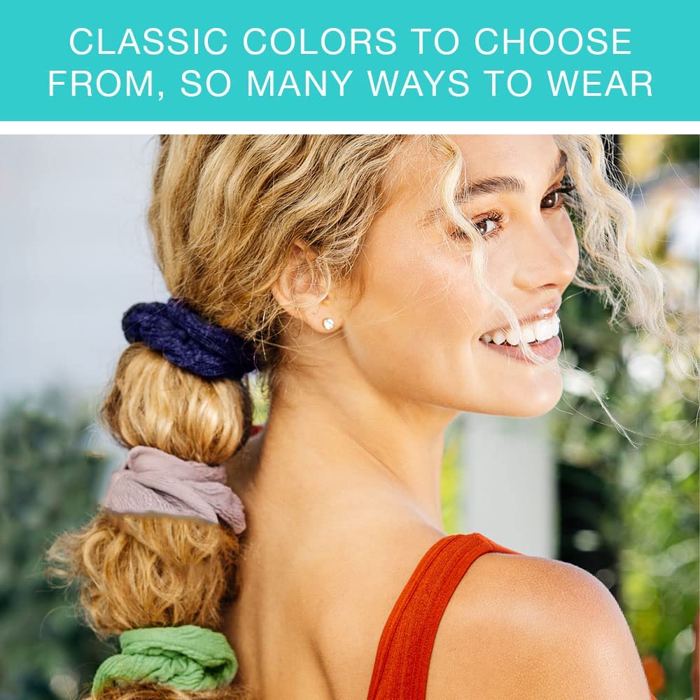 Elevate your hair accessories collection with Scunci by Conair The Original Scrunchie Waffle Knit Scrunchies. This set of 6 scrunchies in navy, white, red, blue, grey, and black offers a variety of colors to match your outfits and add a touch of retro charm to your hairstyles.