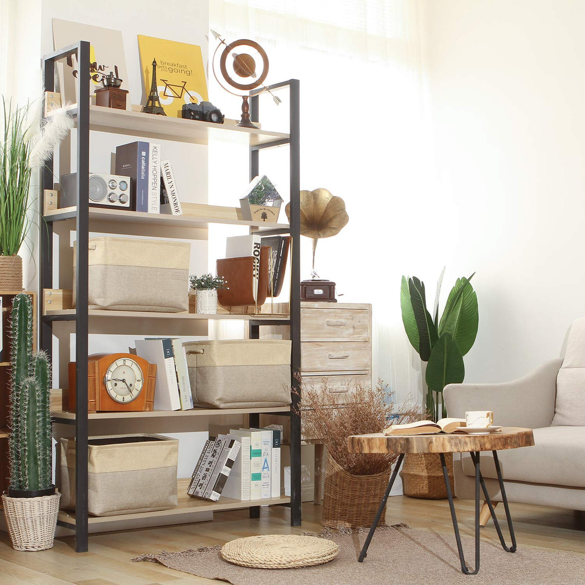 Sea Team 3-Pack Large Storage Basket Set, Trunk Organizer, Clothes Toys Bin, 15 x 10 x 10 Inches, Big Rectangular Canvas Fabric Collapsible Shelf Box with Handles for Kids Room (Tan/Beige)