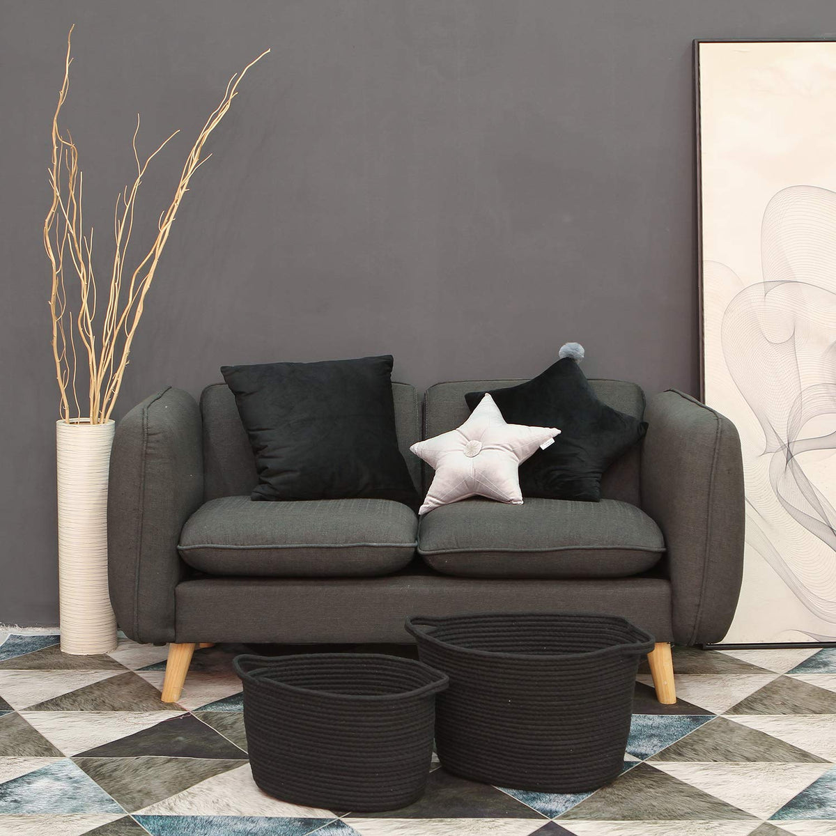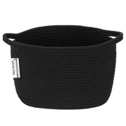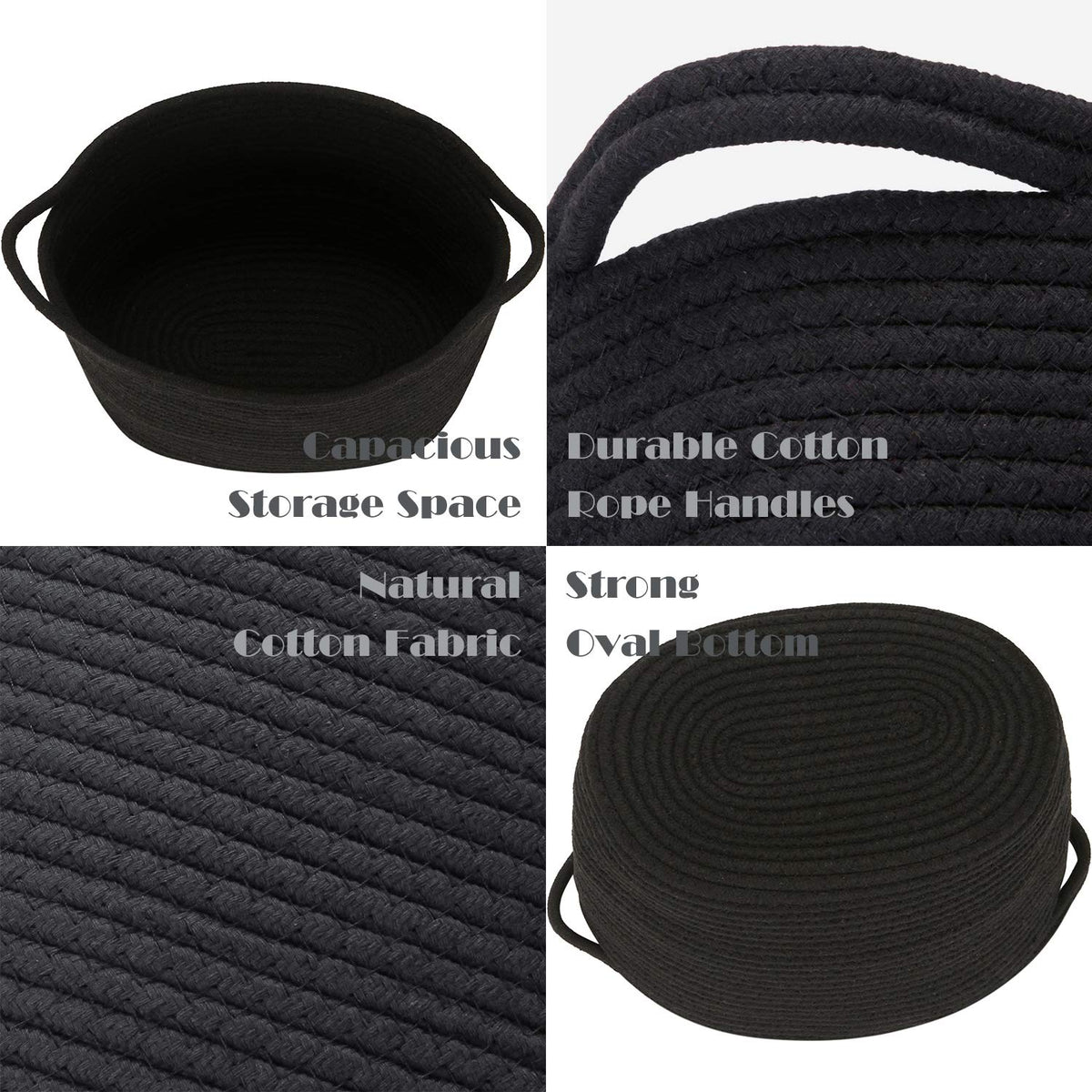 Sea Team Oval Cotton Rope Woven Storage Basket with Handles, Diaper Caddy, Nursery Nappies Organizer, Baby Shower Basket for Kid's Room, 12.2 x 8.7 x 9 Inches (Small Size, Black)