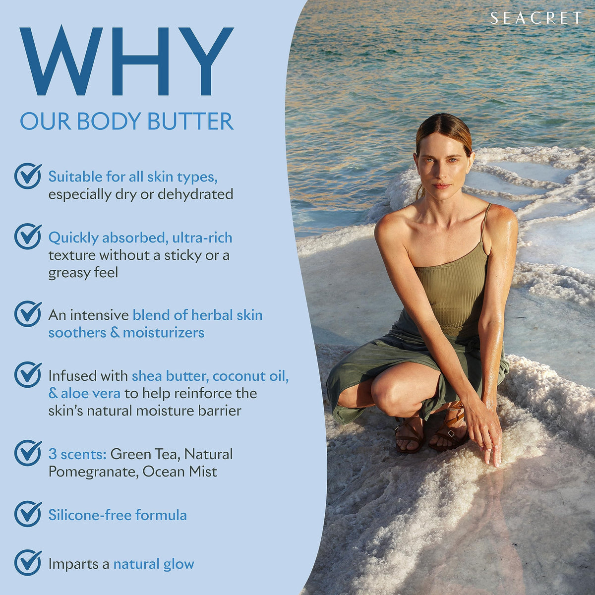 SEACRET OCEAN MIST BODY BUTTER: Hydrating Body Moisturizer Cream with Shea and Cocoa Butter, Vitamins E & C, and Dead Sea Minerals for All Skin Types, 8.5 FL. OZ, Ocean Mist
