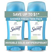 Secret Antiperspirant and Deodorant for Women, 24hr Sweat & Odor Protection, PH Balanced Protection, Gentle on Skin, Invisible Solid, Shower Fresh Scent, 2.6 oz (Pack of 2)