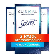 Stay confident and dry with Secret Clinical Strength Clear Gel Women's Antiperspirant and Deodorant. This stress response formula in a pack of 3 offers 1.6 oz of long-lasting protection, keeping you fresh throughout the day.