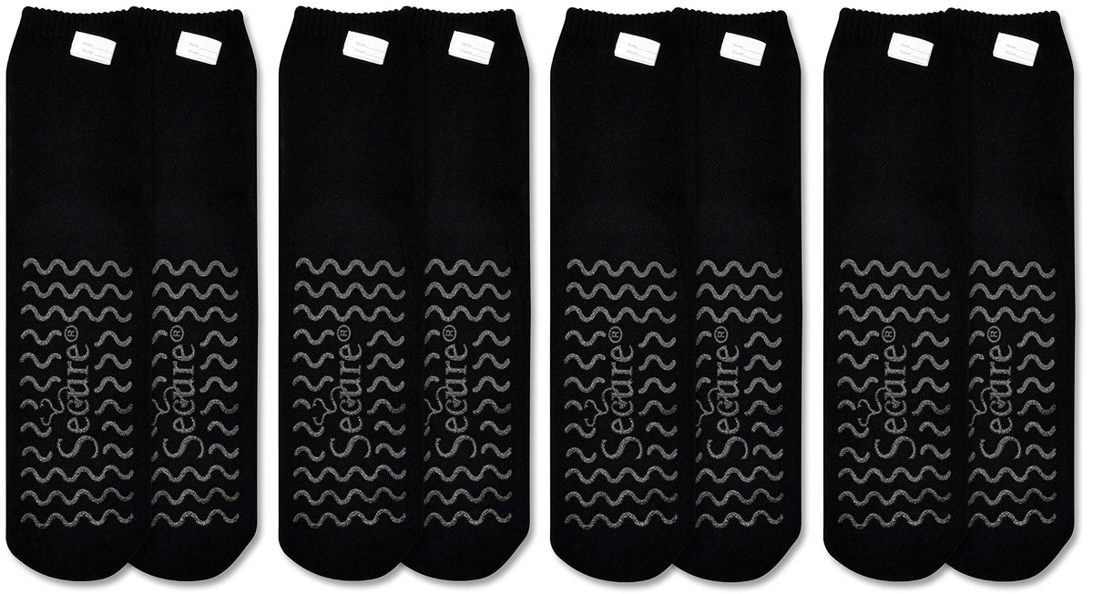 Secure (4 Pairs) Non Skid Socks with All-Around Grip Tread - Hospital Style for Elderly Fall Injury Prevention