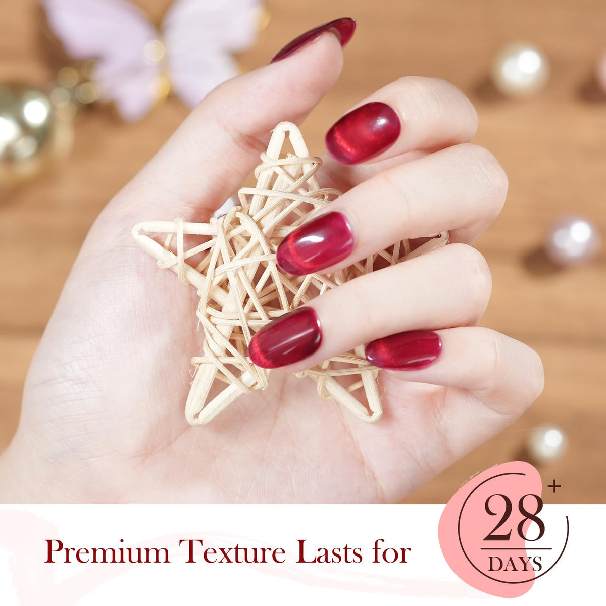 SEISSO Wine Red Cat Eye Gel Nail Polish Set features a 15ml Magnetic Burgundy Nail Polish with a deep reflective soak-off UV gel. Perfect for salon & DIY nail art.