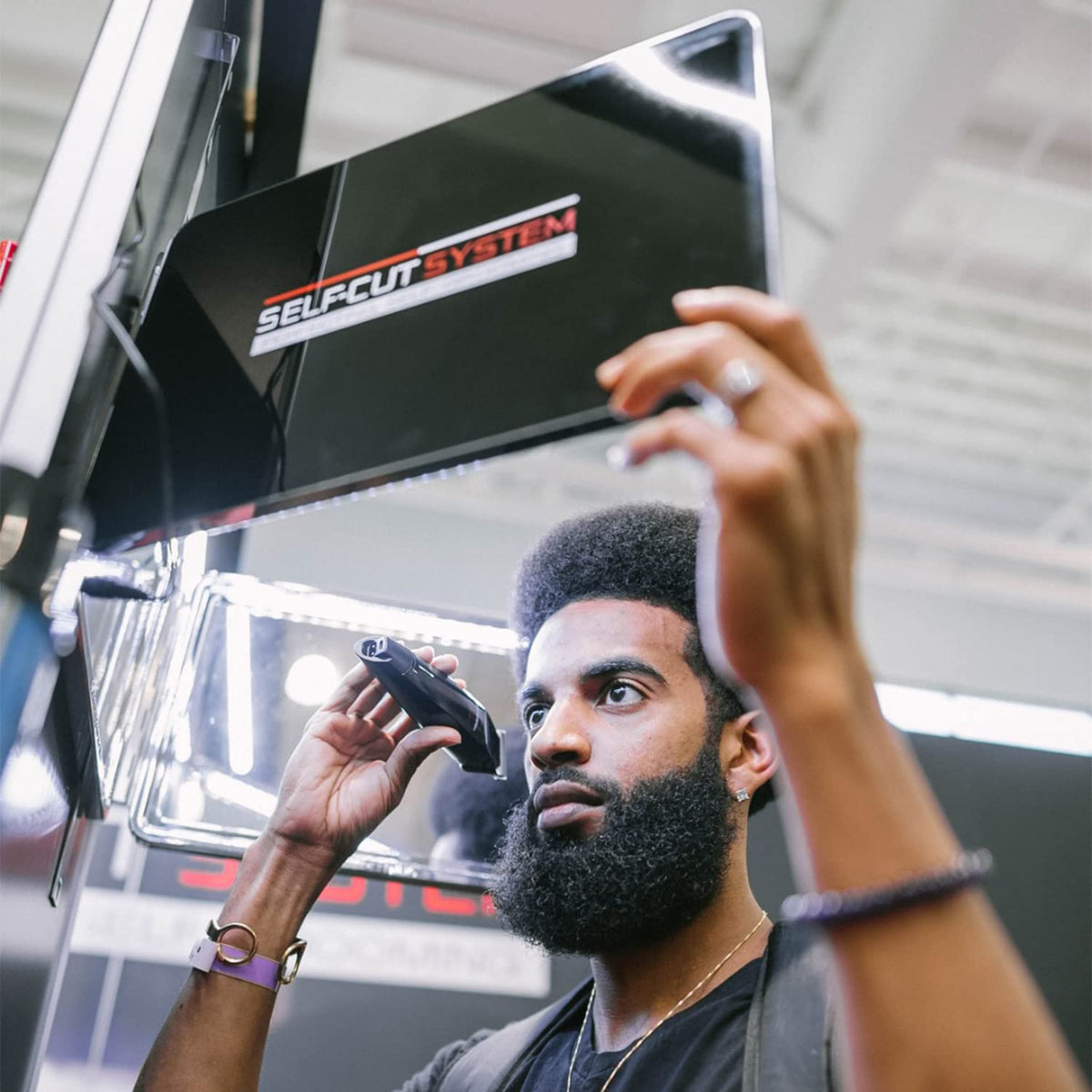 SELF-CUT SYSTEM 2.0 LED Lighted Black Lambo 3 Way Mirror is a revolutionary tool for at-home hair cutting. With an educational mobile app, this mirror helps you achieve professional results and perfect your haircutting skills.
