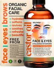 SELFWISE Organic Castor Oil For Face Moisturizer, Eyes, Eyelashes, Eyebrows, Wrinkles with Jojoba, Rosehip, Grapeseed, Squalane, Palmarosa, Bergamot and Vitamin E for Gentle Skin, Men & Women 1oz