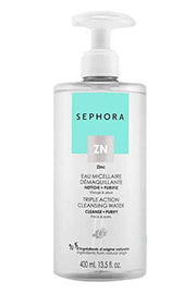 Discover the SEPHORA COLLECTION Triple Action Cleansing Water - Cleanse + Purify, a luxurious cleansing water formulated with zinc and aloe vera. Effortlessly remove makeup while purifying your skin for a radiant, clean complexion.