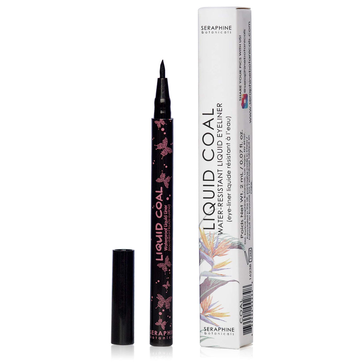 Seraphine Botanicals Waterproof Liquid Eye Liner in Liquid Coal is a long-lasting liner pen with an ultra-fine tip for precise application. Its gel formula is highly pigmented, smudge-resistant, and ensures a bold, defined eye makeup look.