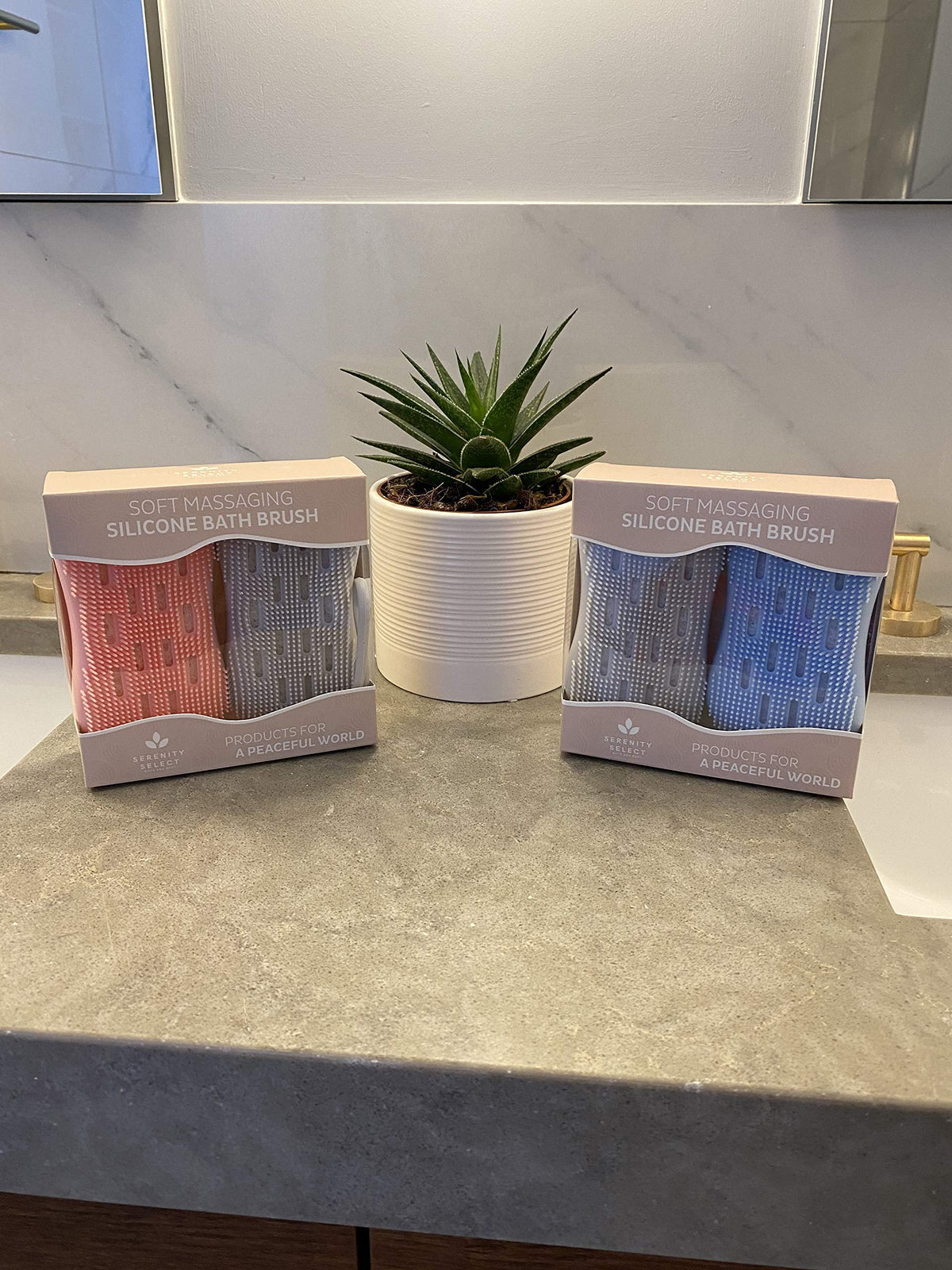 Serenity Select 2 pack Exfoliating Silicone Body Scrubbers for Use in Shower, Silicon Loofah Brush Double Sided Bath Sponge- Cleanses, Stimulates Circulation- Silicone Bath Body Brush- Blue/Gray
