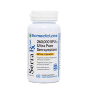 Serra-RX 260,000 SU Serrapeptase is a systemic enzyme supplement in 60 vegan capsules, designed to support sinus, immune, and lung health with an acid-resistant proteolytic formula that is non-GMO, gluten-free, and vegan-friendly.