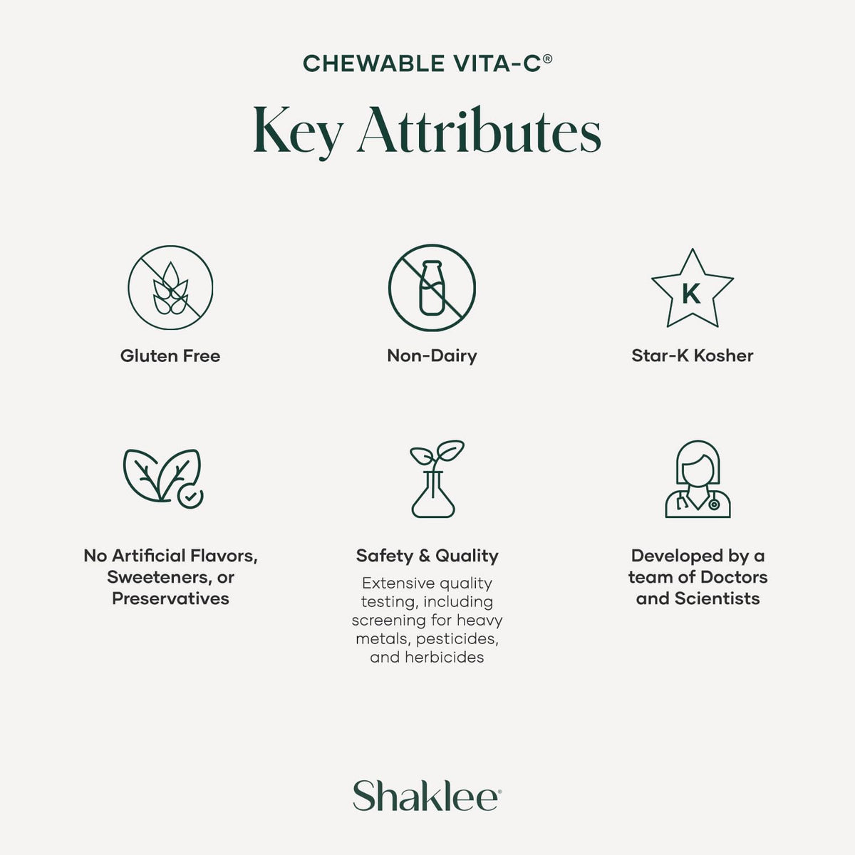 Shaklee - Chewable Vita-C 250mg - Cellular Support and Immune Boost - Lemon Flavored Vitamin C Chewable Tablets for Easy Consumption - Ideal for Children and Adults - 60 Tablets
