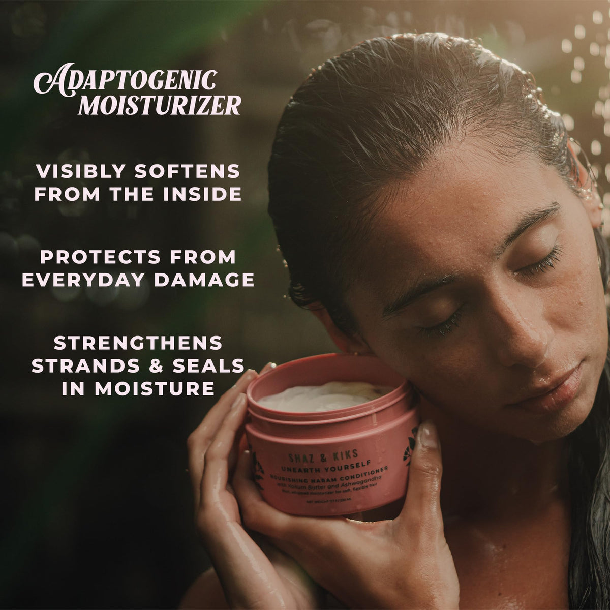 SHAZ & KIKS Nourishing Naram Conditioner is a light-weight conditioner suitable for all hair types. Infused with Ayurvedic adaptogens, it visibly softens and protects hair, leaving it smooth and nourished.