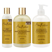 SheaMoisture Deep Moisturizing Hair Care For Curly, Dry and Damaged Hair Raw Shea Butter 3 Count Sulfate Free Shampoo and Conditioner, Hair Detangler with Sea Kelp and Argan Oil