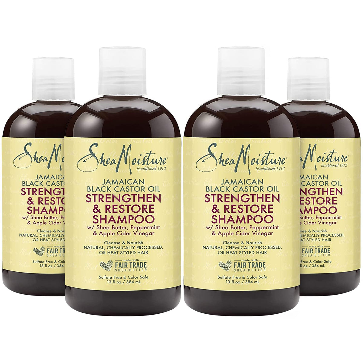 SheaMoisture Jamaican Black Castor Oil Strengthen & Restore Shampoo, Shea Butter, Peppermint & Apple Cider Vinegar, Sulfate Free, Chemically Processed Hair, 13 Fl Oz Ea (Pack of 4)