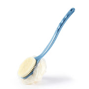 Shower Body Brush with Bristles and Loofah,Back Scrubber Bath Mesh Sponge with Curved Long Handle for Skin Exfoliating Bath, Massage Bristles Suitable for Wet or Dry, Men and Women (Blue)