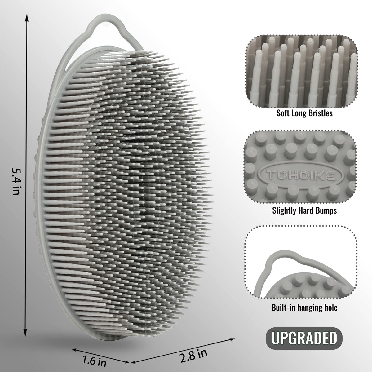 Silicone Loofah Exfoliating Body Scrubber Set of 3 Soft Bath Sponge/Shower Brush for Sensitive Kids Women Men All Kinds of Skin (Black/Gray/Blue)
