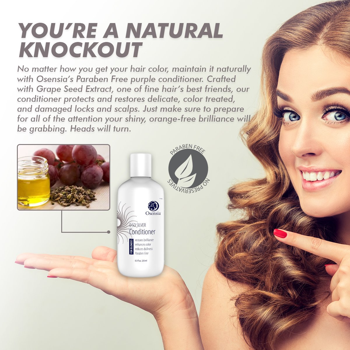 Silver Conditioner for Brassy Hair - Toning Purple Conditioner - Paraben Free Blonde Treatment for Highlights, Platinum, Bleached, and Gray Hair - Grape Seed Hydrates and Brightens Color by Osensia