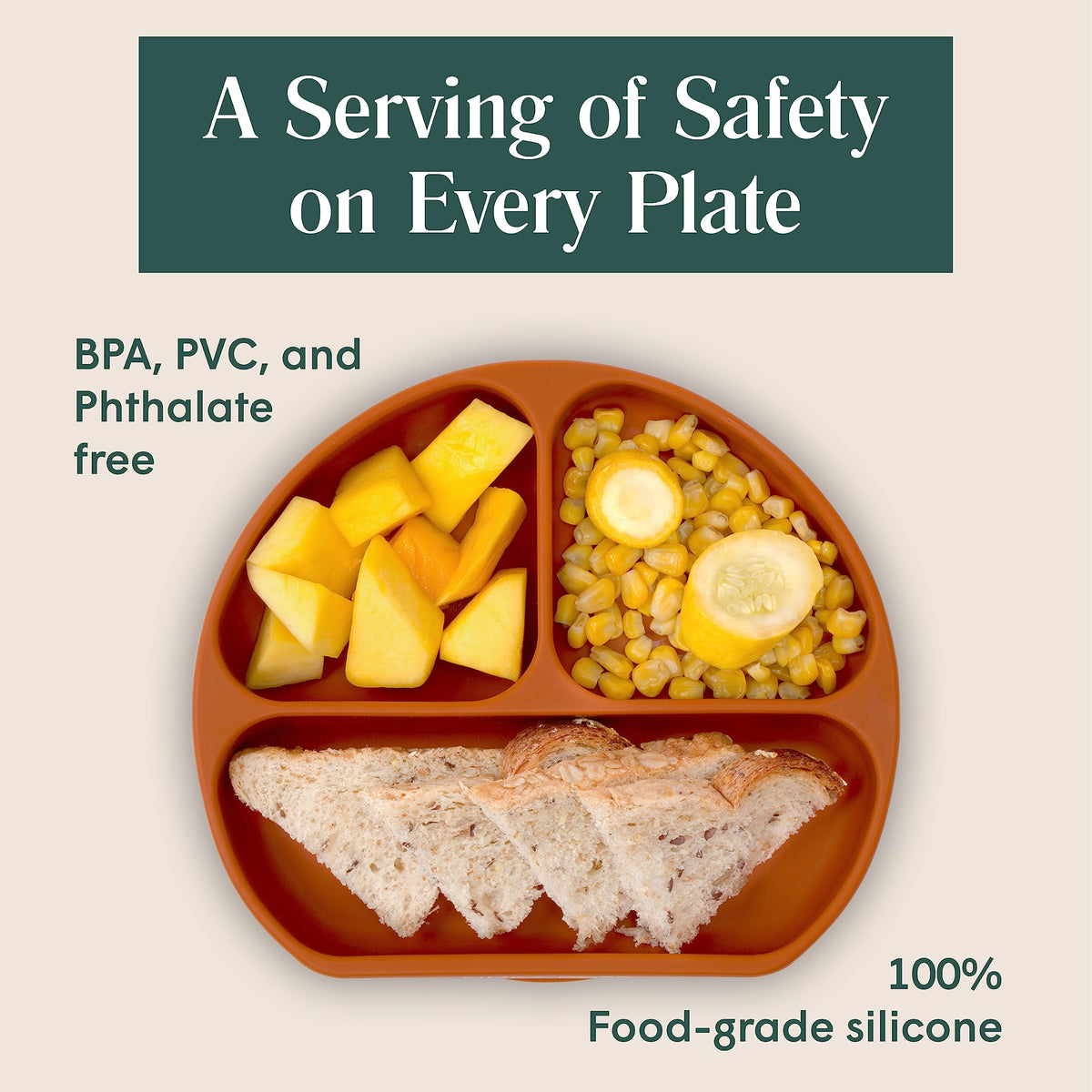 Simka Rose Baby Suction Plates - Silicone Divided Design, Toddler Plates - BPA Free, Microwave & Dishwasher Safe - Baby Led Weaning Supplies (Pack of 1)