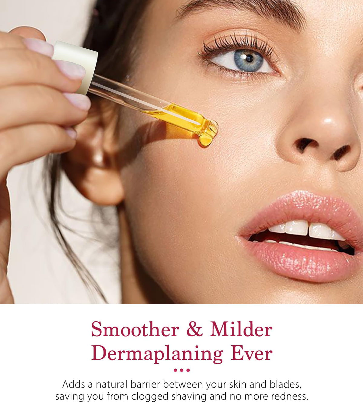 Discover the natural beauty secret with SINAHET Dermaplaning Oil. This moisturizing shave oil is enriched with Jojoba, Vitamin E, Tea Tree, and Grape Seed essence, providing a soothing and nourishing experience for your face and body hair.
