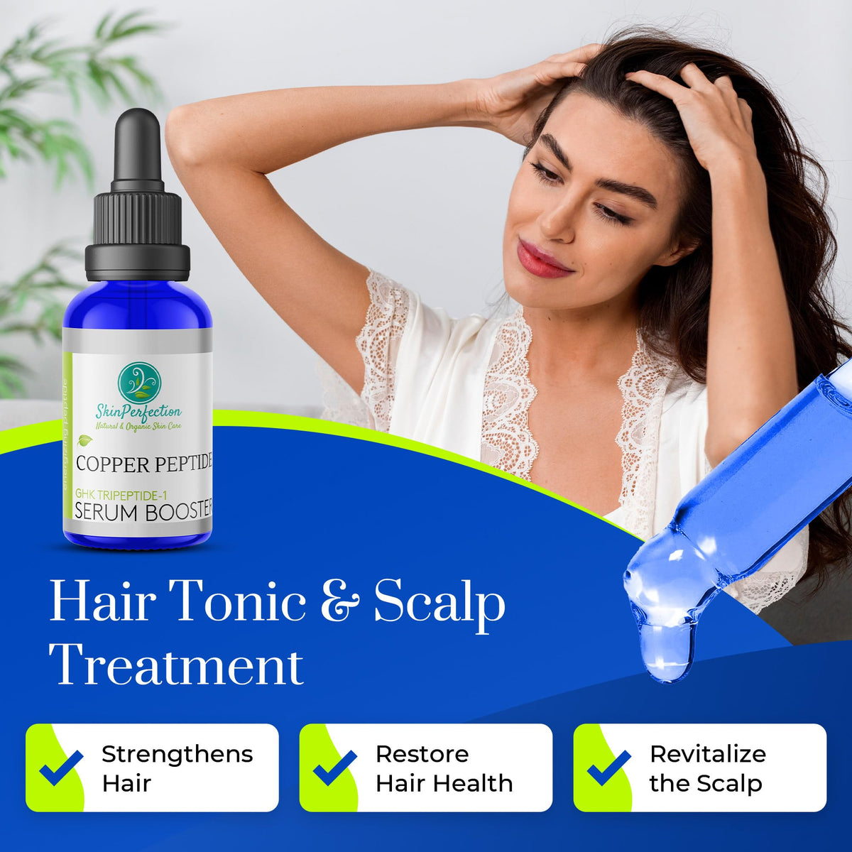 Skin Perfection GHK-CU Copper Peptides Serum is a versatile serum for face and hair enriched with copper peptides. This serum helps rejuvenate and revitalize the skin, scalp, and hair, promoting a more youthful appearance.